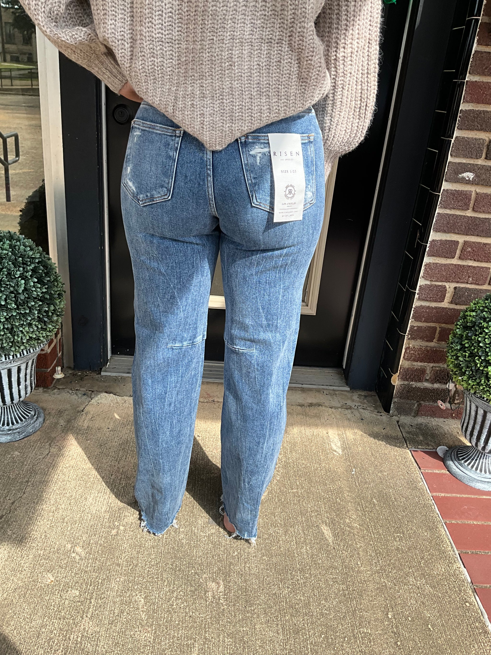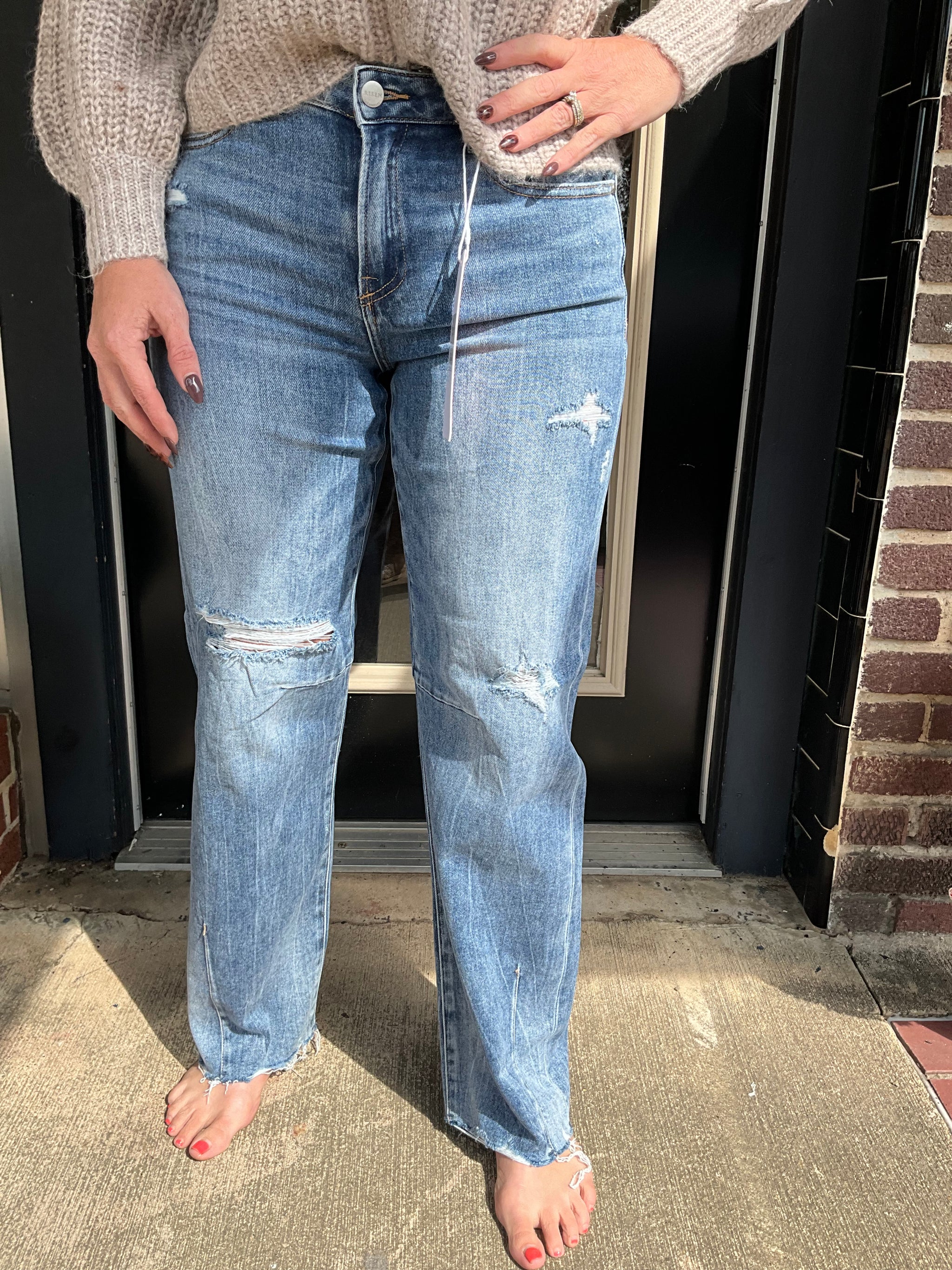Mid rise, baggy leg, washed jeans, impeccable detailing!