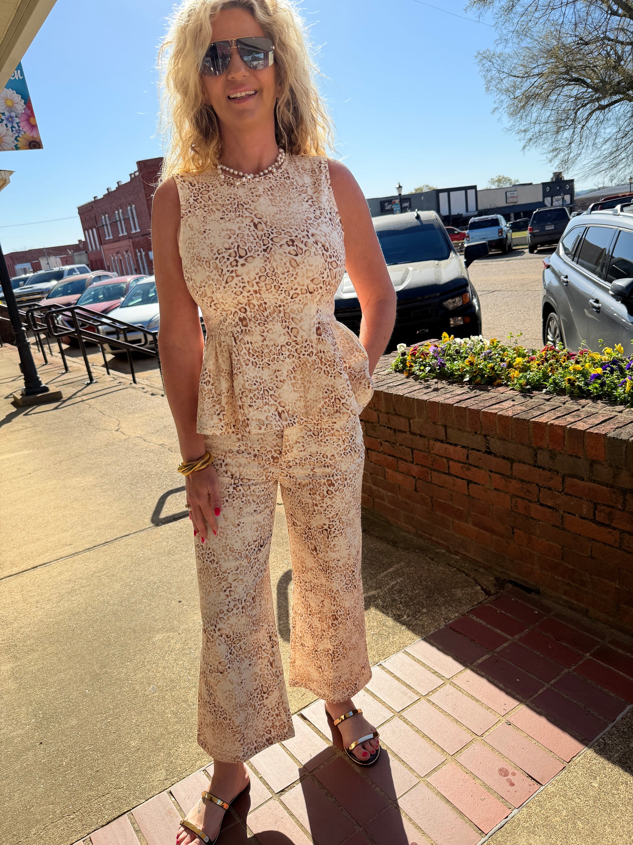 Make a bold statement in the Golden Safari Leopard Wide Leg Pants, featuring a flattering high-waisted fit and breezy cropped silhouette. These stylish animal print boutique pants are lightweight, comfortable, and perfect for dressing up with heels or styling casually with sandals for chic everyday fashion.